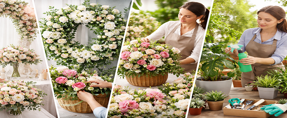 Techniques de composition florales évènementielles(Mariages,deuils,fêtes) et entretien des végétaux